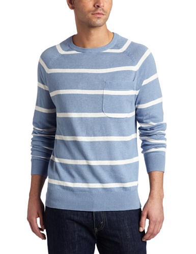 French Connection Men's Isopach Linen Stripe Sweater, Infinity Blue/Cuba White, Large Reviews